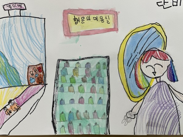 누리나래 구립베라힐즈어린이집(무궁화반) 4 페이지 정보 작성자 수빈T 댓글 0건 조회 5,390회 작성일 24-05-31 09:48 본문 유아 이름: 이최단비(만5세) 원 주소: 서울특별시 은평구 통일로 630 녹번래미안베라힐즈 어린이집(02-356-9987) 작품 설명: 어린이들이 오고 싶어하는 미용실에서 일하는 미용사가 되고 싶어요. 놀이방도 있어요. 미용실 이름은 '행운의 미용실'이에요. 우리 미용실에 오면 행운이 가득해져요. 검색 목록 글쓰기 이전글공립교대어린이집(푸른하늘반) 24.05.31 다음글구립베라힐즈어린이집(무궁화반) 3 24.05.31 댓글목록 댓글목록 등록된 댓글이 없습니다.