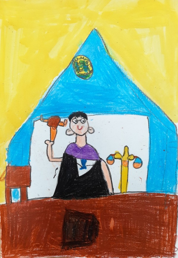 작품설명: 지혜로운 판사가 되어 잘못한 사람들을 판결하고 싶어요.